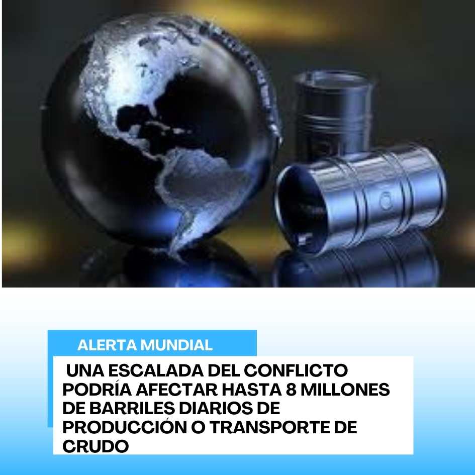 Analistas energéticos señalan que una escalada del conflicto podría afectar hasta 8 millones de barriles diarios de producción o transporte de crudo, lo que representaría cerca del 7 % u 8 % del consumo mundial de petróleo.